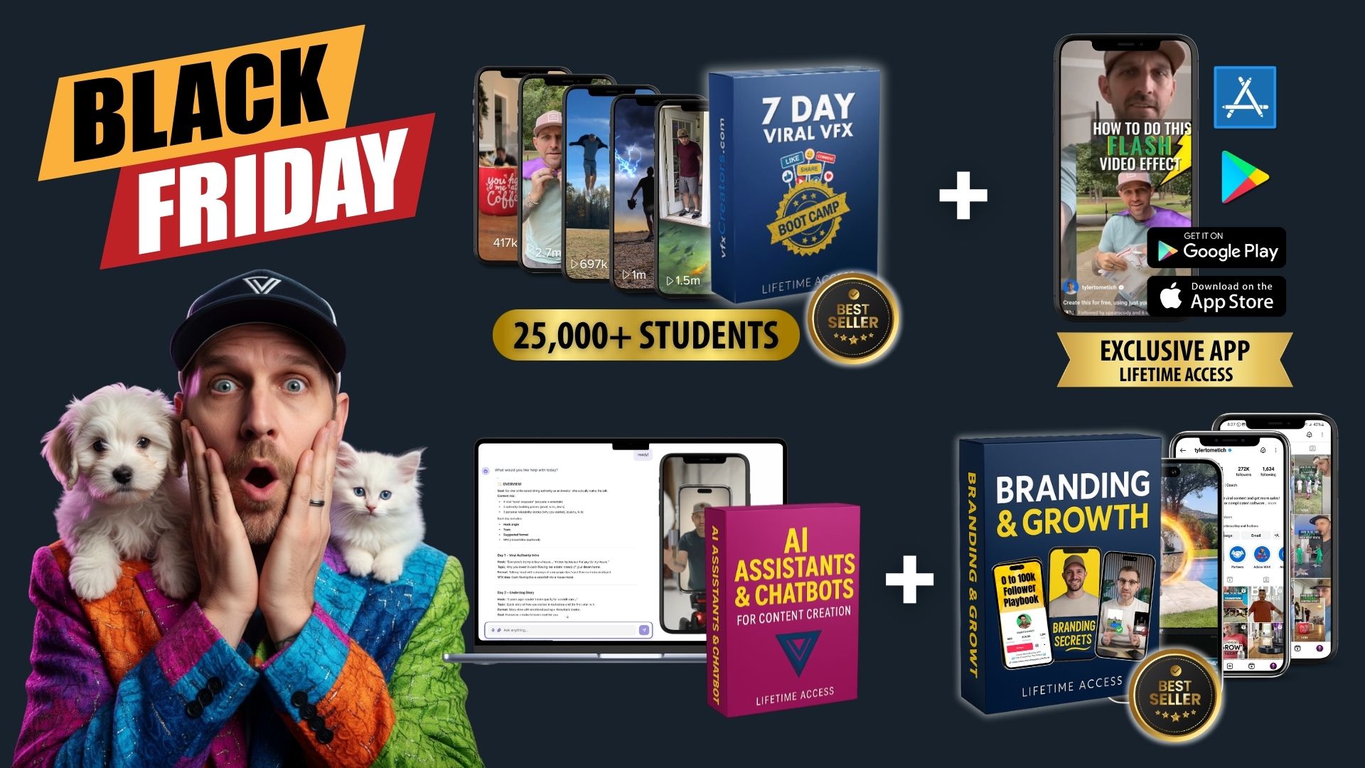 BLACK FRIDAY BONUS: Get additional lifetime access to our popular Branding course, Follower-Growth course, the IOS/Android App, our A.I. Content Assistant and so much more at no extra cost.